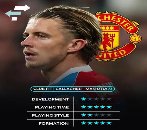 加拉格爾是一名適合曼聯,但又不完全符合眼下需求的中場球員。卡塞米羅和布魯諾·費爾南德斯最近在343的中場位置發揮較為穩定,降低了阿莫林對新中場的迫切需求,但球隊肯定還是需要這個位置的新援。